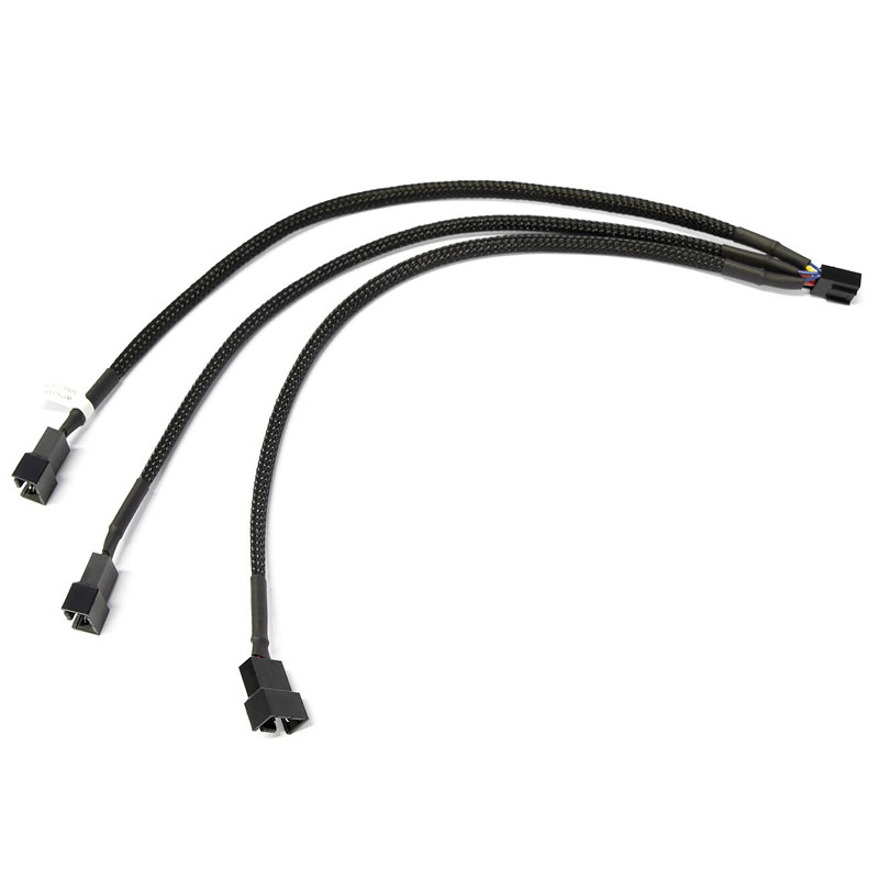 Y-splitter, 3x PWM fans to 1x connection, black sleeved