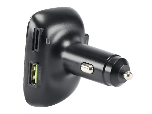 Bluetooth FM transmitter with charger function, supporting 2 phones at the same time. The product has a built-in LED display on which you can read the battery voltage in real time. It uses Fast Charging QC3.0 and AUTO-ID technology.