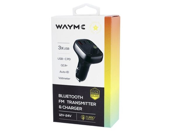 WAYME FM transmitter 12/24V with USB-C PD, QC4.0 +, Auto-ID, voltmeter & HandsFree