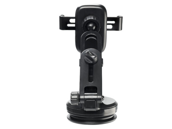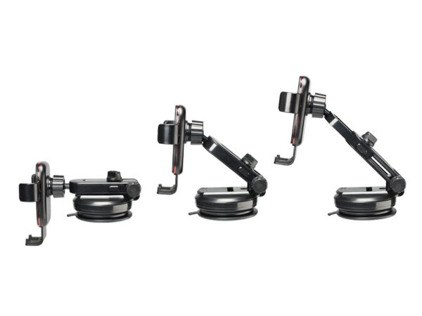 Practical and solid support fixed by a suction cup. It allows you to modify the length and inclination of the arm and adjust several angles using a rotating ball. Gravity locking and unlocking is done with one hand.