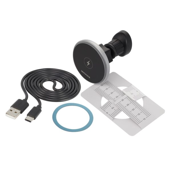 Wayme Magnetic aluminum air vent holder with 15W inductive charger + USB cable > USB-C 100 cm