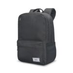 The backpack has a simple with elegant design in black with interesting red elements and comfortable adjustable shoulder straps.