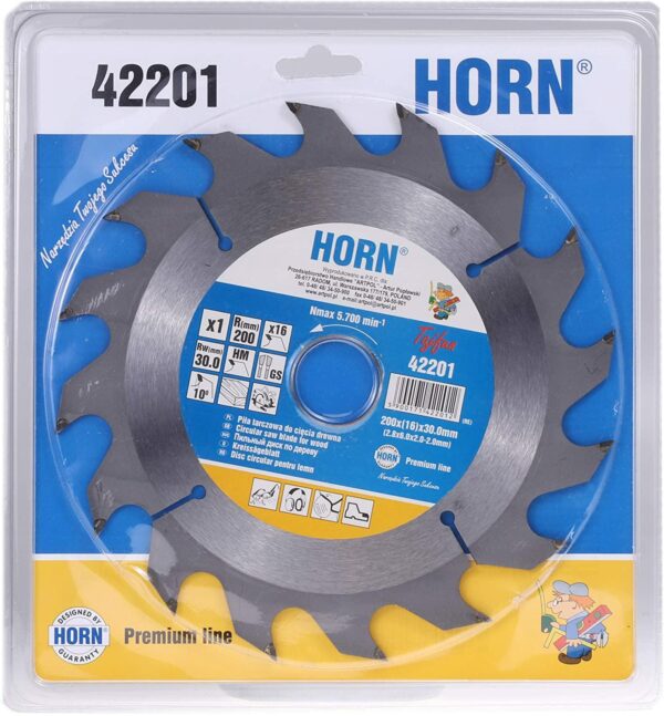 Skirta pramoniniam naudojimui su visų tipų elektriniais įrankiais, skirta pjauti minkštą ir kietą medieną, kitas medienos plokštes, medienos plaušų ir gipso plokštes. Specialus HM kietlydinys garantuoja ilgą dantų tarnavimo laiką ir leidžia daugkartinį galandimą. Techninė specifikacija: gamybos medžiaga: 50# anglinis plienas (metalinis diskas) pjovimo ašmenys: kietlydinys. ašmenų kietumas: 85°HRc (+/-2°). GS ašmenų geometrija: 10° atakos kampas. maks. sukimosi greitis: 6 300 aps./min. prekės ženklas: Artpol (Horn). Matmenys: skersmuo: o210mm. dantų skaičius: 60 vidinė skylė: o30.0 mm.