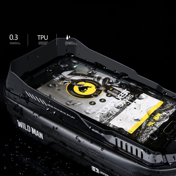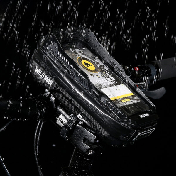 - Functional waterproof bicycle frame bag with a built-in phone case.