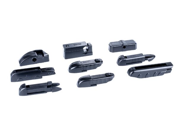 Wiper blade with 10 powerful adapters for 99% of vehicles with different attachments. They are suitable for cars with left and right hand drive (LHD and RHD) and with counter-rotating arms. They are manufactured to the highest ISO environmental standards and are recyclable. Steel insert with curve memory effect helps eliminate burrs. A special aerodynamic spoiler and teflon-coated rubber band ensure quiet operation and make the window cleaner than ever.