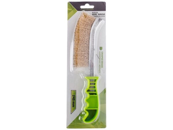 The brush is made of crimped brass wire. It’s recommended for cleaning stubborn dirt, rust as well as for smoothing metals, stones, plastics and edges.