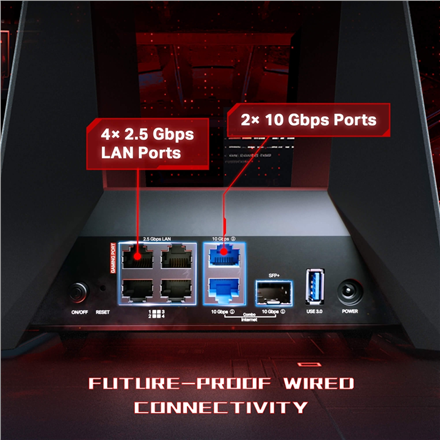 - Two 10G Ports for Future-Proof Connectivity: 2× 10 Gbps WAN/LAN ports, and 4× 2.5 Gbps LAN ports support massive bandwidth for wired gaming devices and ultra-fast connections, accommodating all gaming needs