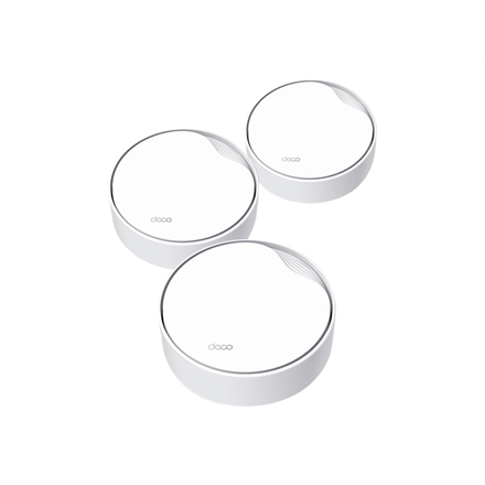 | Summary | TP-Link AX3000 Whole Home Mesh WiFi 6 System, 3-Pack. Product colour: White, Antenna type: Internal, Transmit power: CE: <20 dBm (2.4 GHz) <23 dBm (5 GHz) FCC: <30 dBm (2.4 GHz) <30 dBm (5 GHz). Wi-Fi band: Dual-band (2.4 GHz / 5 GHz), Top Wi-Fi standard: Wi-Fi 6 (802.11ax), Wi-Fi standards: 802.11a, 802.11b, 802.11g, Wi-Fi 4 (802.11n), Wi-Fi 5 (802.11ac), Wi-Fi 6 (802.11ax). Processor frequency: 1 GHz, Firewall security: SPI, Parental control features: Custom profiles, Time controls, Weekly/monthly reports. AC adapter output voltage: 12 V, AC adapter output current: 1.5 A. Compliance certificates: CE, RoHS |