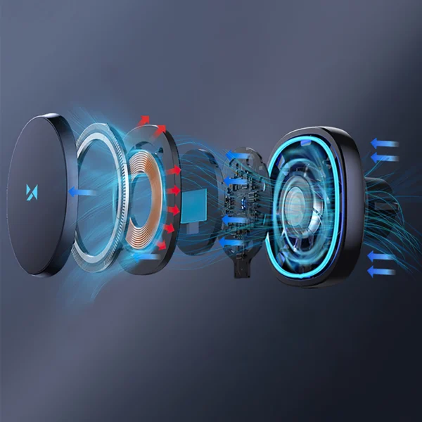 The holder automatically begins wireless charging at up to 15W as soon as the phone is placed on it. It supports iPhones from the 12 series and above, as well as other Qi-enabled phones, thanks to the included magnetic ring.