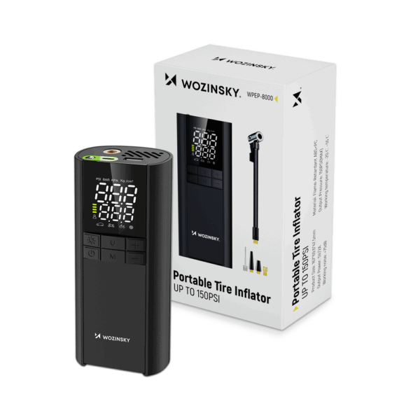 The Wozinsky WPEP-8000 compressor is a compact electric pump designed for everyday and emergency use. It allows for quick inflation of car, motorcycle, bicycle, and saw tires, with precise pressure control on a clear display. A built-in 8000 mAh battery also allows the device to be used as a power bank, while an integrated LED flashlight enhances functionality after dark. Intuitive operation, and inflation modes are tailored to various applications, providing practical support for travel, the garage, and recreational activities.