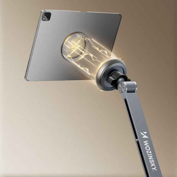 Looking for a mount that adapts to your needs, regardless of the situation? The Wozinsky WTY0YS1 is a magnetic phone or tablet mount that impresses with its flexibility, durability, and functionality. With 360° rotation, adjustable height up to 53 cm, and foldable design, it's perfect for both home and work. The stable, three-axis construction guarantees device security, while the magnetic mounting system with up to 20 strong magnets securely holds even heavier tablets. It's a practical solution for anyone who values convenience, space-saving design, and modern design.