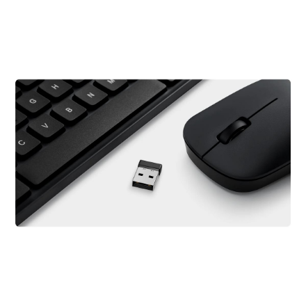 XIAOMI wireless keyboard + optical wireless mouse – AAA battery + USB-A receiver Mouse and keyboard set Elegant black design, ideal dimensions and weight Scissor keys with medium high lift Mouse with wheel and button to change DPI Connection using a small USB-A receiver Powered by AAA pencil batteries (not included) for long life