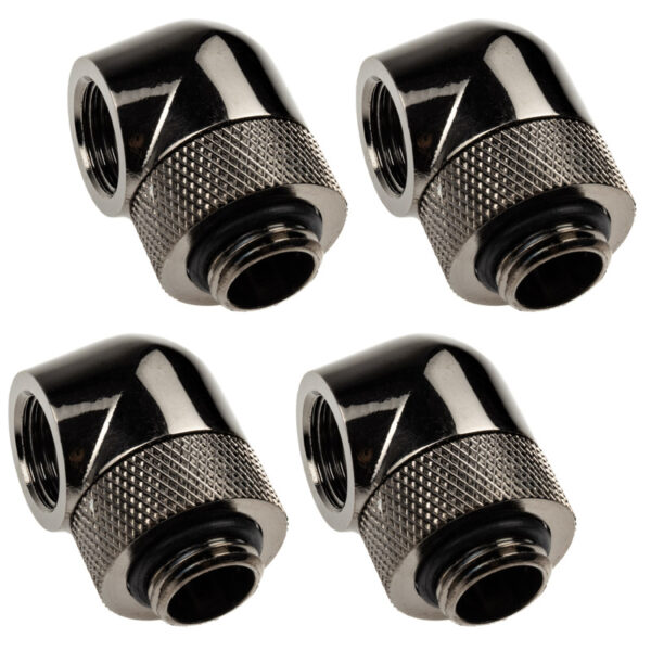 XSPC Adapter 90 Degree G1/4 Inch Male to G1/4 Inch Female – Rotatable, Black Chrome, Pack of 4