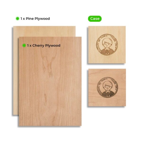 - 1 x Cherry Plywood, 5.7″ x 8.3″ x 0.1″ (14.5cm x 21cm x 0.3 cm)