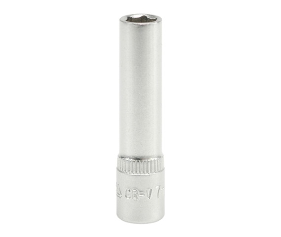 Ilgas šešiakampis galvutės antgalis 1/4″ 7mm CrV YT-1418. Techniniai duomenys: Ilgis L: 50mm Šešiakampio dydis: 7mm Skersmuo D1: 12,0mm Skersmuo D2: 10,5mm Svoris: 25g.