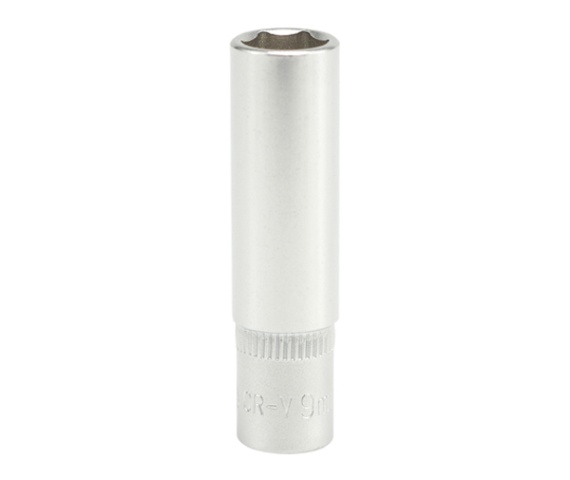 Ilgas šešiakampis galvutės antgalis 1/4″ 9mm CrV YT-1420. Techniniai duomenys: Ilgis L: 50mm Šešiakampio dydis: 9mm Skersmuo D1: 12,4mm Skersmuo D2: 13,1mm Svoris: 27g.