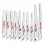 Pjūkleliai, skirti medienai ir metalui pjauti. pagaminti iš BiM plieno su dideliu kobalto kiekiu standartinis laikiklis 2 vienetai pakuotėje Paskirtis: plieninių vamzdžių, forminių elementų, profilių ir medienos su vinimis pjovimas armatūros strypų pjovimas Parametrai: ilgis [mm]: 225 storis [mm]: 1,0 dantų žingsnis: 24 TPI
