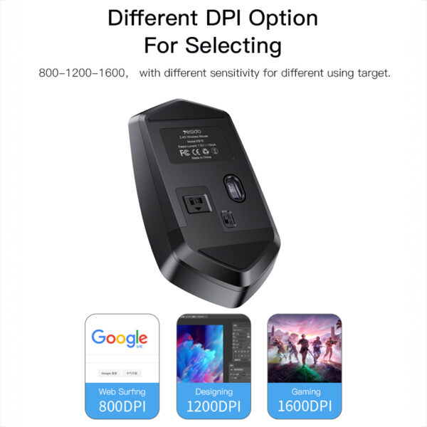 - Adjustable DPI – Three levels (800/1200/1600) tailored to various needs: browsing, designing, gaming.