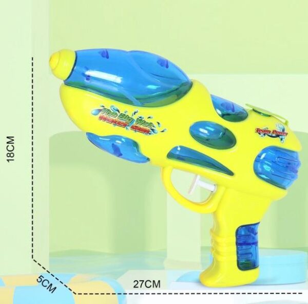 Prekės tipas- Žaislinis vandens šautuvas. Prekės ženklas- -. Artikulas- MX0372556. Ilgis- 18 cm. Spalva- Mėlyna, Žalia, Kelių galimų spalvų/dizainų, parenkama atsitiktine tvarka. Medžiaga- Plastikas. Įspėjimas dėl žaislų- Pašalinkite visą pakuotę, tvirtinimo detales prieš perduodant šį žaislą vaikui. Ant pakuotės esančią informaciją rekomenduojama išsaugoti. Rekomenduojama naudoti prižiūrint suaugusiems. Gali būti smulkių arba aštrių detalių, kuriomis vaikas gali užspringti arba susižeisti.. Rekomenduojamas amžius nuo- 3 m..