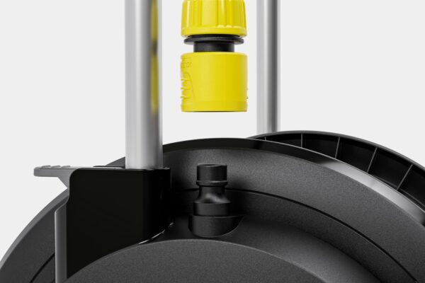 Stabilus ir tvirtas žarnų vežimėlis leidžia sutaupyti vietos sodo žarnos laikymui ir yra labai patogus naudoti. Žarną galima patikimai suvynioti naudojant ergonomišką švaistiklį. Žarnų vežimėlis taip pat renka balus dėl ypač plataus pagrindo, užtikrinančio maksimalų stabilumą, atsparumą UV spinduliams ir šalčiui, ir patogų antgalio laikiklį ant rankenos. Komplekte yra 20 m žarna, Kärcher laistymo priedai ir antgalis. Dėl naujoviškų greito atleidimo svirtelių teleskopinė rankena gali būti patogiai sureguliuota į reikiamą aukštį arba nustumiama iki galo. Kärcher suteikia 5 metų gamintojo garantiją. Žarnos vežimėlis tiekiamas pilnai surinktas.
