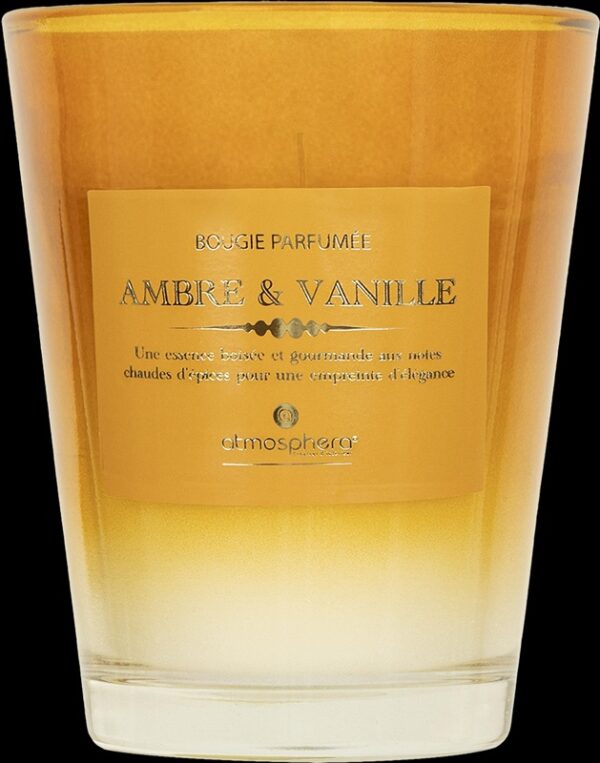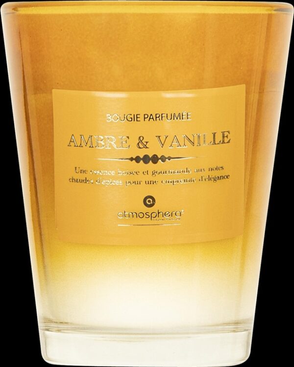 Prekės ženklas- Atmosphera. Modelis- Ambre. Artikulas- 200618A. Aukštis- 12.4 cm. Skersmuo- 10 cm. Svoris- 270 g. Spalva- Geltona. Žvakės tipas- Aromatinė. Degimo laikas- 38 – 38h. Vienetai pakuotėje- 1. Privaloma garantija- 24 mėn.