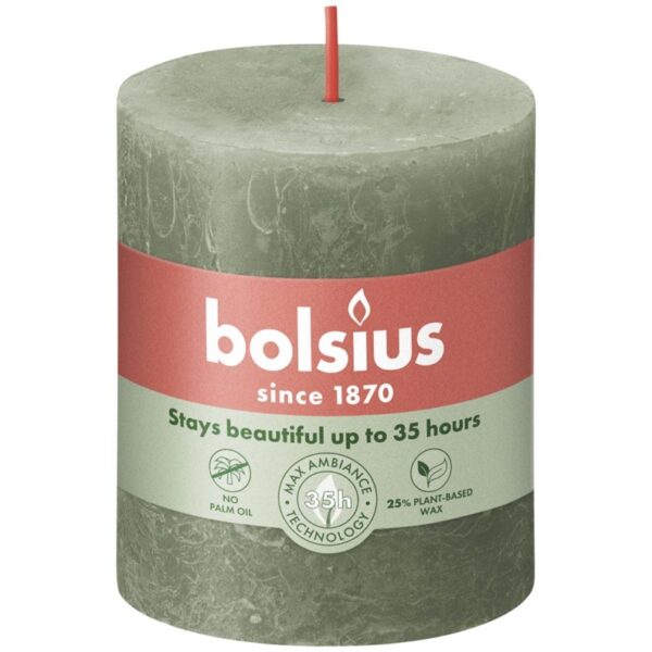 Žvakė, cilindrinė Bolsius Rustic, 8/6.8 cm, alyvuogių žalia